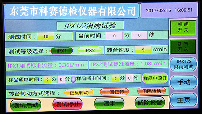 IPX防水試驗(yàn)設(shè)備也稱為淋雨試驗(yàn)箱或防水試驗(yàn)箱,IPX防水試驗(yàn)設(shè)備分為多個(gè)等級(jí),分別為IPX1-2,IPX3-4,IPX5-6,IPX7-8,IPX5-6-6K9K等多種等級(jí),具體根據(jù)用戶的測試要求進(jìn)行選擇,IPX防水試驗(yàn)設(shè)備適用于戶外燈具、家用電器領(lǐng)域、手表配件行業(yè)等。下面科賽德(DGKSD)小編把1-9防水等級(jí)的測試要求都列出來供大家參考。